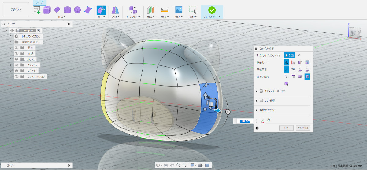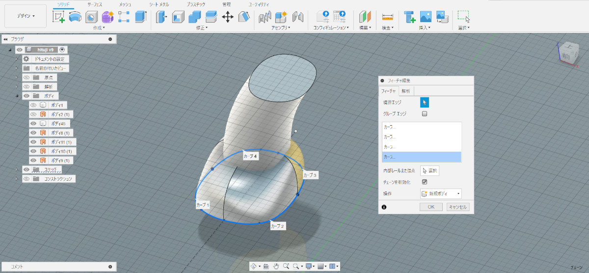 Fusion360の スカルプト機能 は、曲線的でやわらかいフォルムや、有機的なデザインをつくるのにぴったり。CADらしいカッチリした形だけでなく、キャラクターや雑貨など“ふっくらした造形”にも向いています。