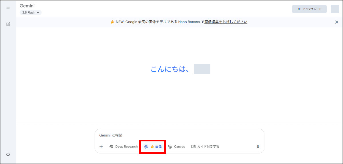 まずは、入力欄の下にある「🍌画像」を選択してください。