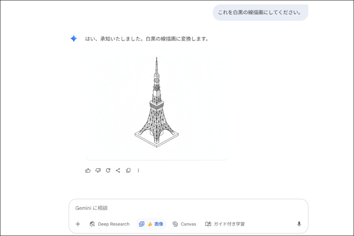 画像生成から5分もかからずに、東京タワーが完成しました。