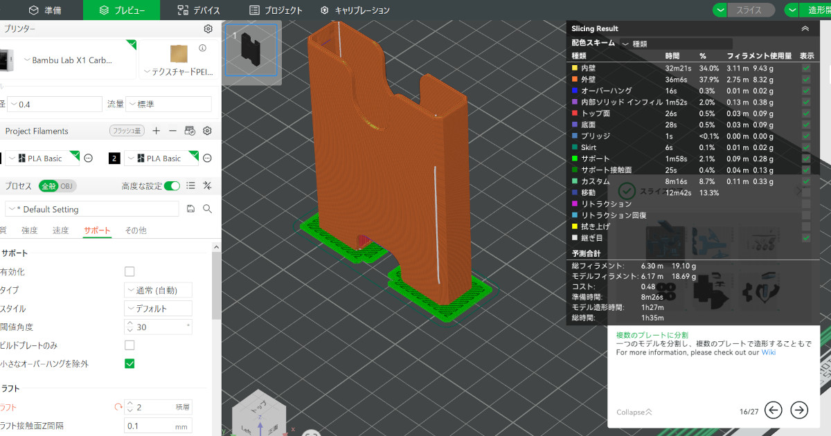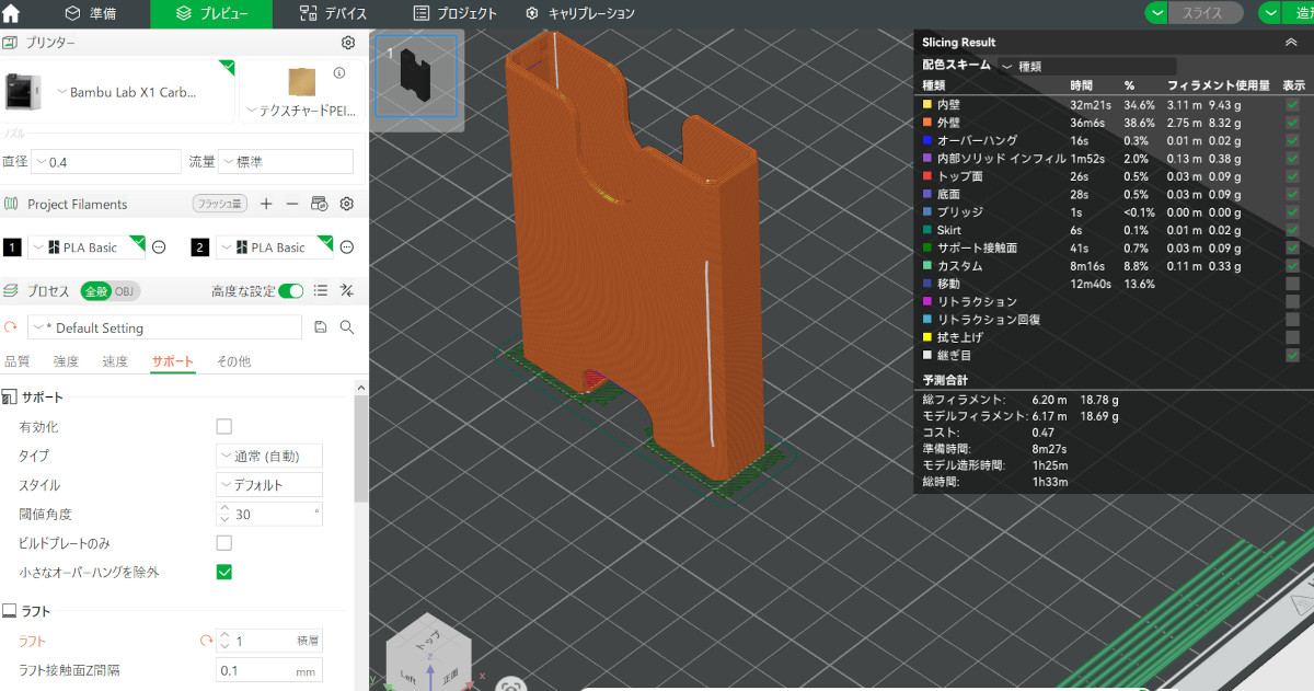 ラフトを1層増やし2層の設定で確認します。