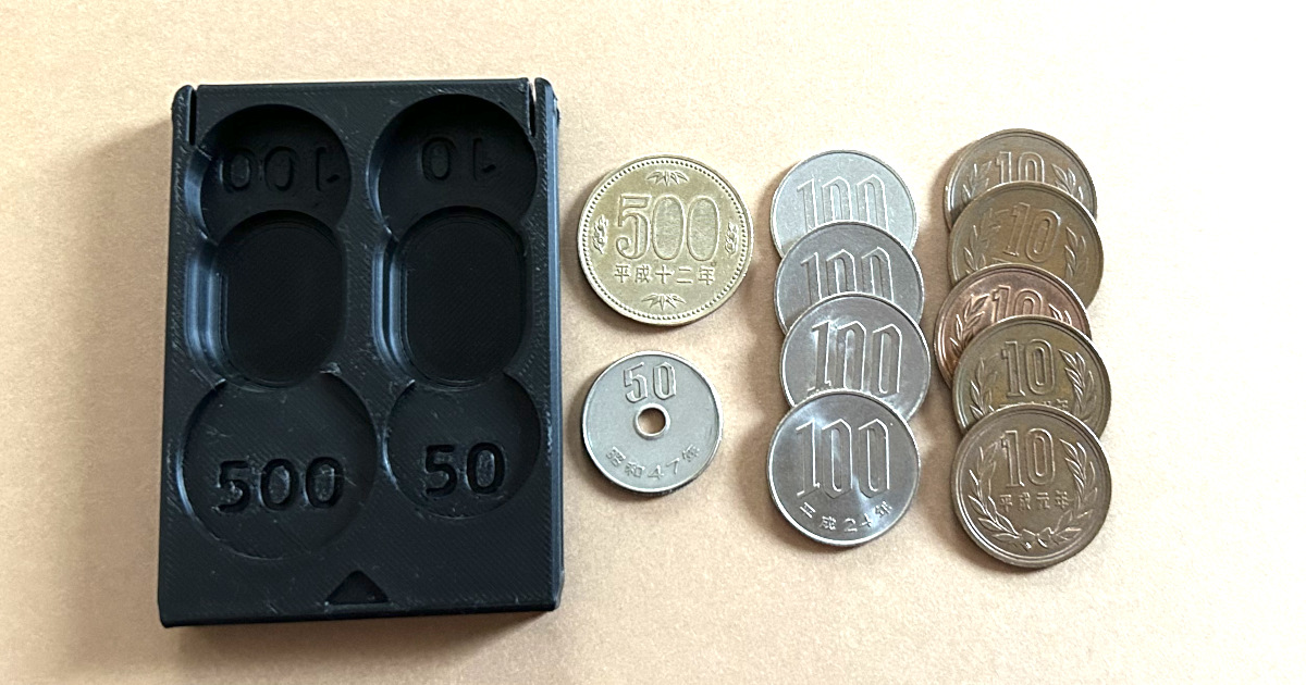 サイクリング中に「野菜直売所で野菜を買おうとしたら小銭がない」という場面が何度もあったので、1000円まで10円単位でちょうど支払うための小銭を入れておくケースを作りました。