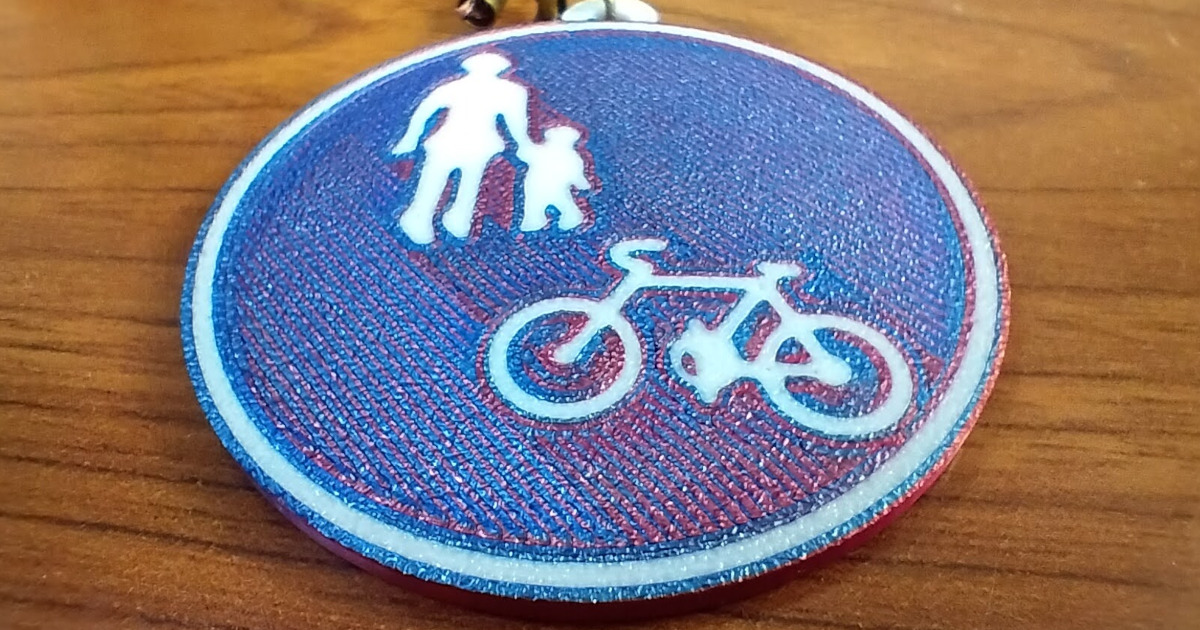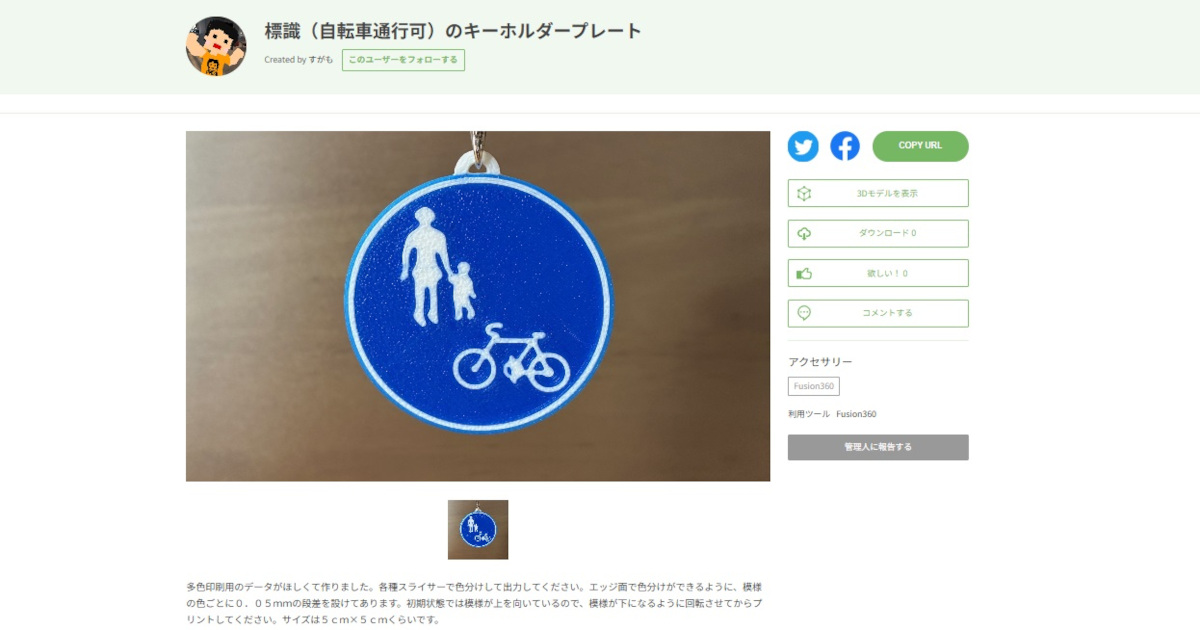 今回は、すがも様の標識(自転車通行可)のキーホルダープレートを造形しました。