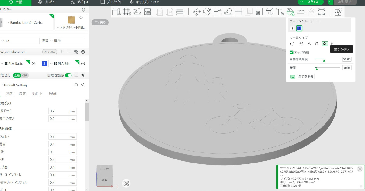 フィラメントの変更が少ない方が無駄が出ないので、どう色分けするかも悩ましいですね。