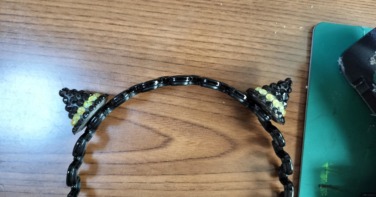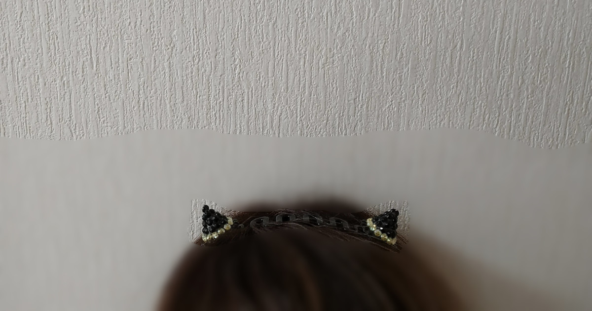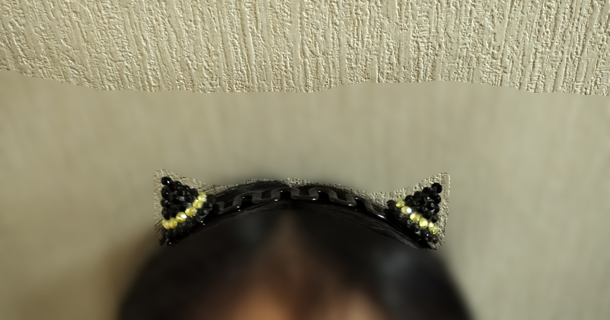 さらに三角形ですからパチッとするのは難しいかも?ということで、カチューシャに仕立てることにしました。