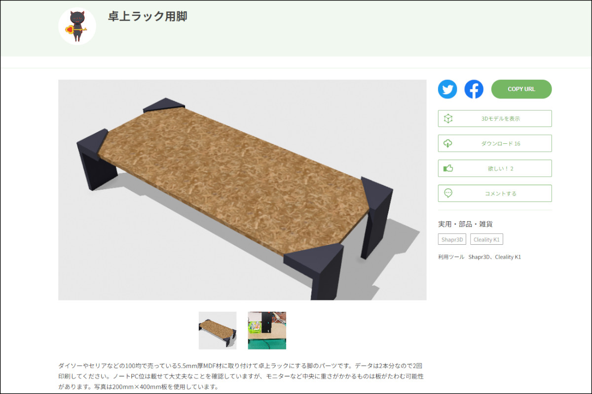 今回使わせていただいたのは、七志野様の「卓上ラック用脚」です。