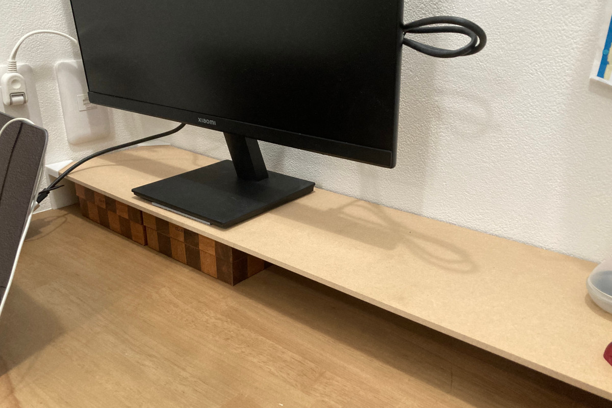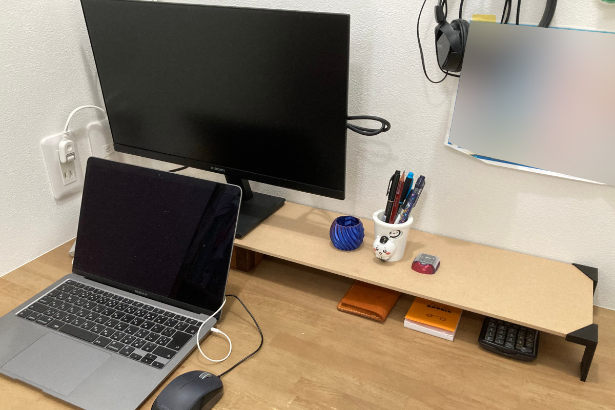 モニタの下に収納を作り、机の上のスペースを有効活用できる卓上ラック の完成です!!