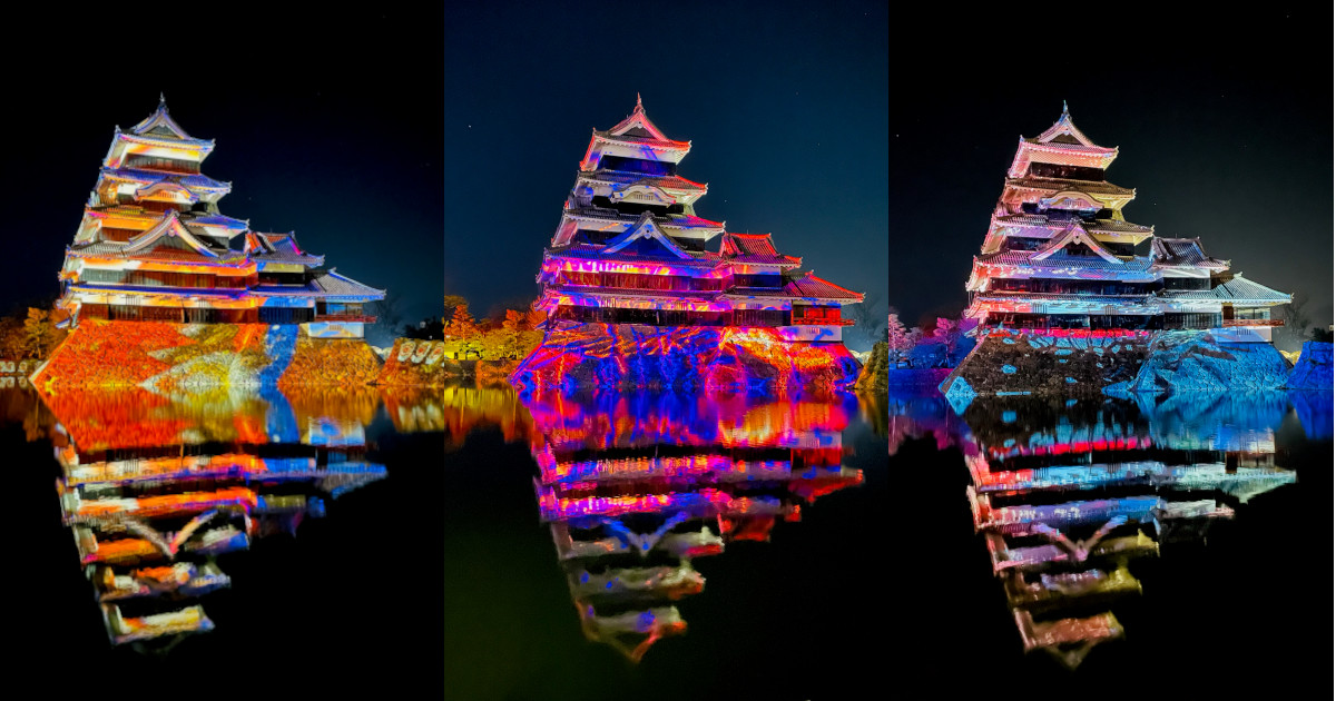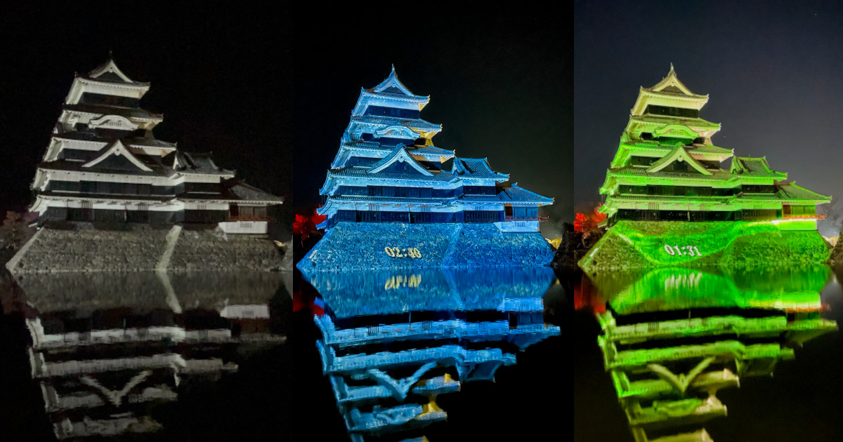 松本城の冬の季節といえば、最近では夜のお城が光で彩られるプロジェクションマッピングが風物詩となっています。