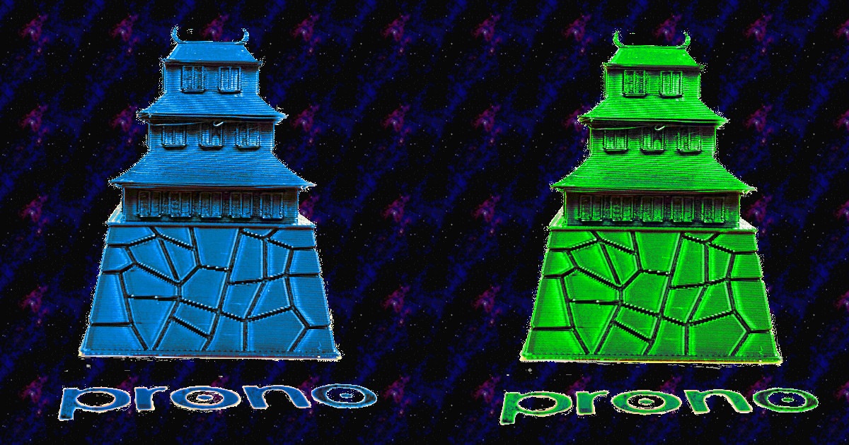 3Dプリンタで造形したお城にプロジェクションマッピングを投影・・・はできないので、画像編集で光を吹き込んでみました!